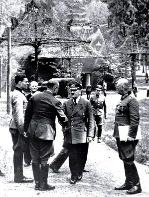 Штауффенберг (первый слева) на встрече с фюрером, 15 июля 1944