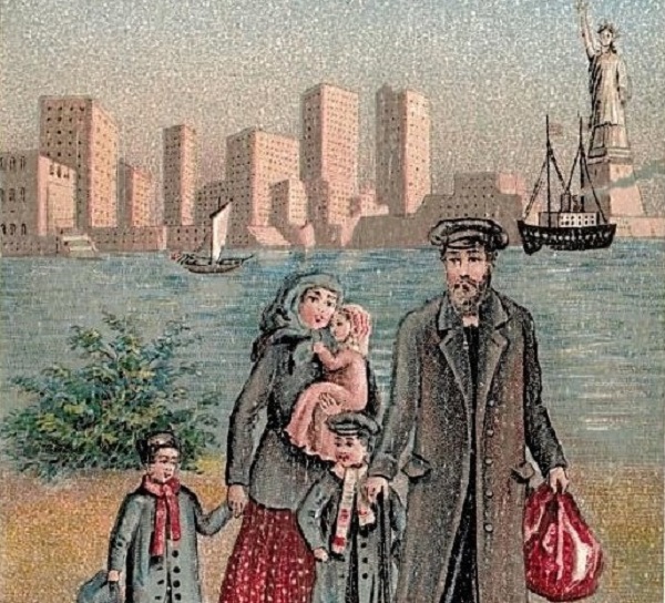 Иммигранты-евреи прибывают на Эллис-Айленд