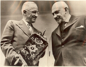 Президент Трумэн (слева — со свитком Торы) с Хаимом Вейцманом