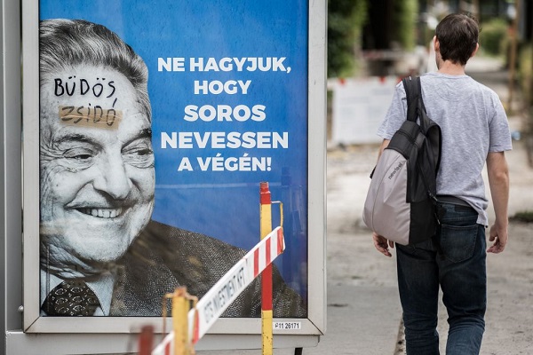 Антисемитское граффити на баннере с портретом Джорджа Сороса, Будапешт