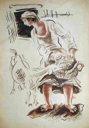 «Красноармеец-трубач», худ. Марк Эпштейн | «Женщина кормящая козу», худ. Марк Эпштейн |