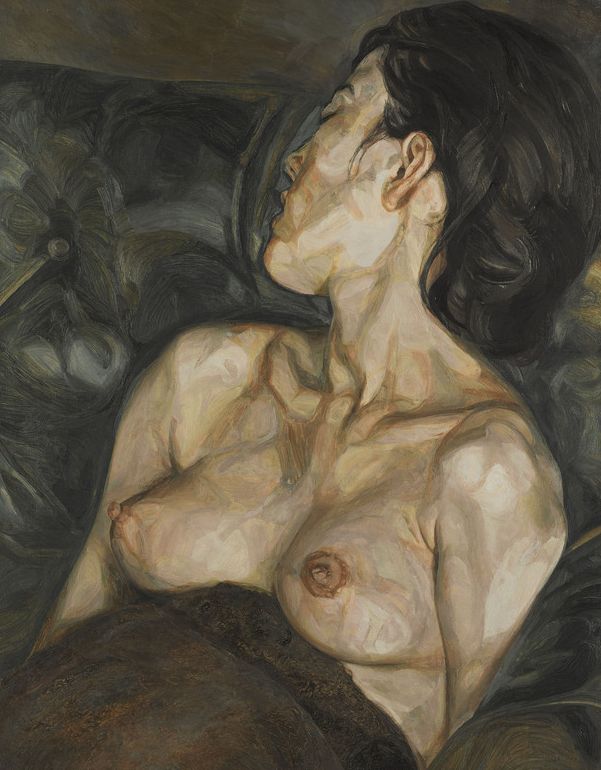 За право приобрести нынешний лот — созданное в 1961 году полотно «Беременная девушка» — боролись шесть участников торгов, в результате чего он был продан гораздо дороже оценочной стоимости в $14,5 млн. На портрете изображена возлюбленная художника — 17-летняя Бернадин Коверли, беременная их первой дочерью, которую родители назовут Белла. К моменту знакомства с Бернадин 38-летний Люсьен уже был дважды женат и имел детей (только официально он признал 14 своих потомков, многие из которых впервые увидели друг друга лишь на похоронах художника в 2011 году). В личном плане 1961-й был памятным для Фрейда — в тот год он стал отцом троих детей от трех разных женщин.