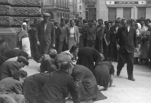 Евреи чистят мостовую у Оперного театра, Львов, 1941
