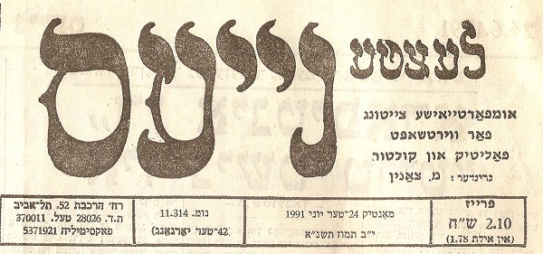 Вопрос о «Лейтце найес» рассматривался на заседаниях правительства. Большинство тогдашних министров по-прежнему думали на своем родном языке — идише — и не спешили прямо запрещать газету. Да и зачем, если можно обложить ее непомерным налогом, как иностранные СМИ, если в школах детей штрафуют за разговоры на маме лошн, если за идиш грозит исключение из всемогущего Гистадрута, что чревато потерей работы и медицинской страховки.