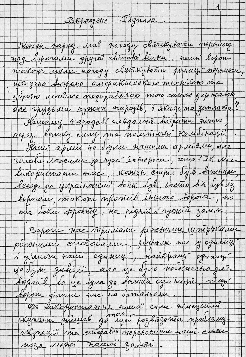 Начнем с воспоминаний Ореста Билака, одного из немногих ныне здравствующих ветеранов Буковинского куреня, инвалида войны, живущего в Лионе, героя французского Сопротивления, кавалера многих военных наград Франции. Ксерокопия рукописного оригинала его воспоминаний «Вкрадене підпілля» уже два десятилетия хранится в архиве Украинского Народного Дома в Черновцах, однако текст этот во многом не совпадает с переводом Радченко. В своих настоящих воспоминаниях Билак пишет: «29 октября в 7 утра мы прибыли в Киев, где встретились с теми, кто был на похоронах Сеника и Сциборского». И далее: «С нашим приездом в Киев начались радиопередачи, в обед выходила программа с пением «Засяло сонце золоте!», издавалась газета «Українське Слово», одним словом ОУН начала работать».