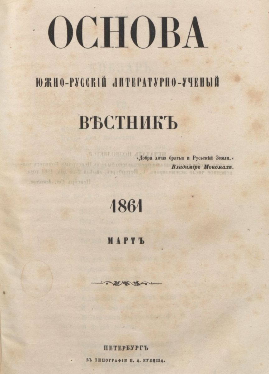 — В этой связи показательна известная полемика 1861 года украинского журнала «Основа», который выходил в Санкт-Петербурге, с русско-еврейским журналом «Сион», издававшимся в Одессе. Авторы «Основы» намекнули в редакционном обращении на равнодушие живущих в Украине евреев к украинскому делу, на что в «Сионе» обиделись, мол, если уж евреи и будут ассимилироваться, то в общерусскую культуру и под знаменем единого литературного языка, разумеется, русского.
