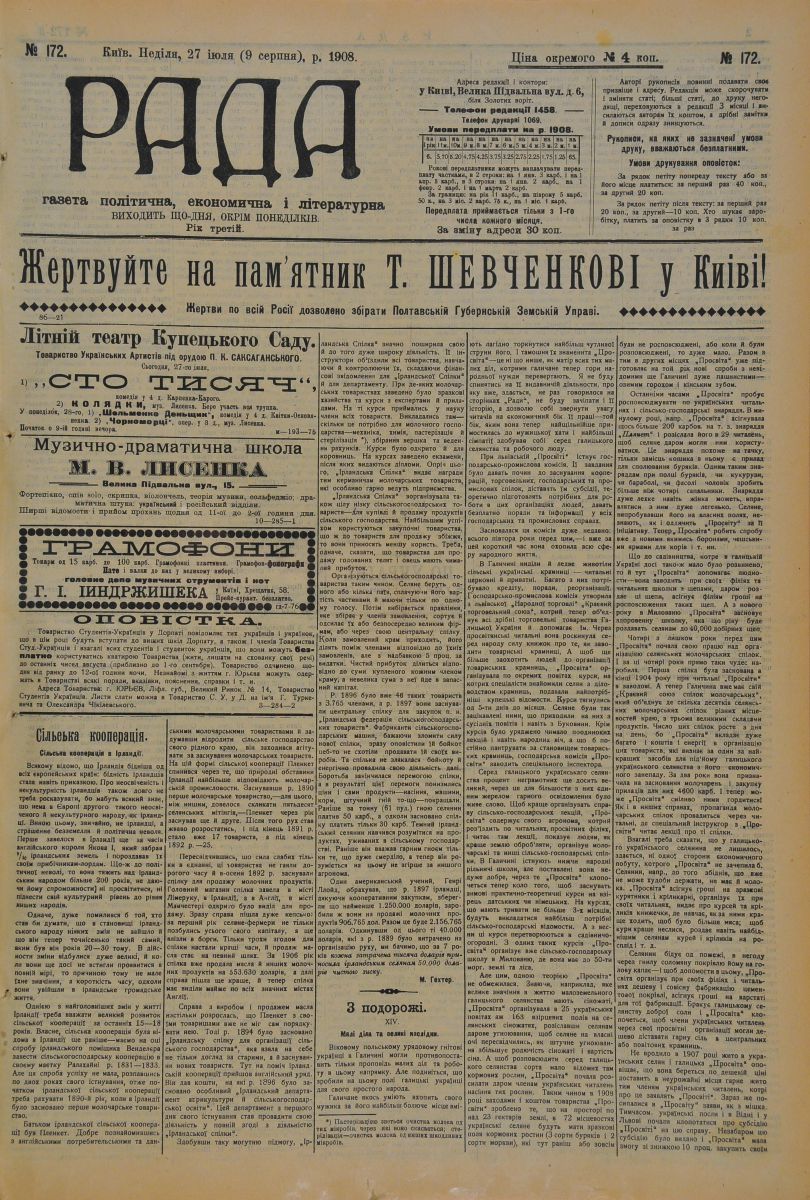 ![]() Газета «Рада», 1908 |