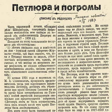 Петлюра и погромы — письмо Владимира Жаботинского в газету «Последние новости»