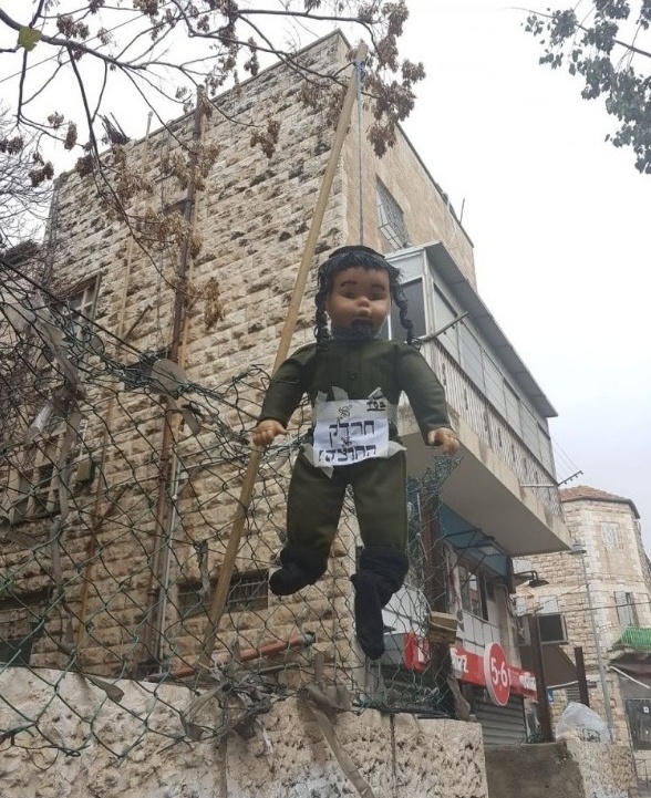 ![]() Кукла повешенного солдата-ультраортодокса, Меа-Шеарим, 2017 |