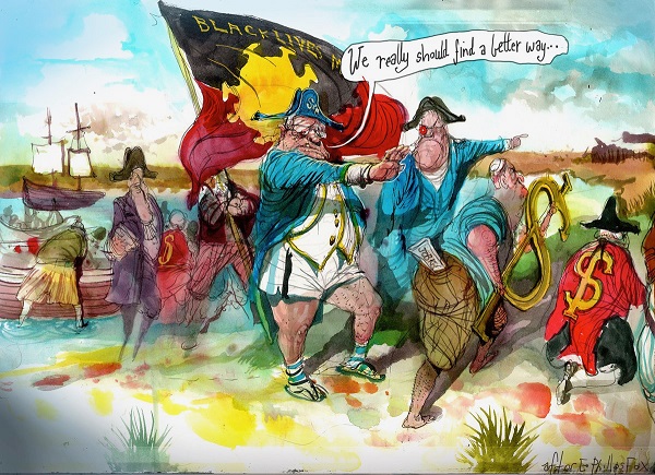 В виде капитана Кука и его команды изобразил правительство Австралии штатный карикатурист ежедневной газеты «Australian Financial Review». И все бы ничего, но фигура государственного казначея (то есть, министра финансов) очень уж смахивала на стереотипного горбоносого еврея с посохом-долларом в придачу.
