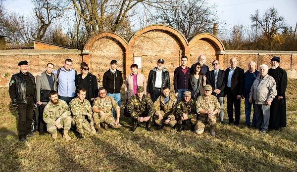 Мэр города, еврейские активисты и участники АТО у стены еврейского кладбища, где шли расстрелы в годы войны