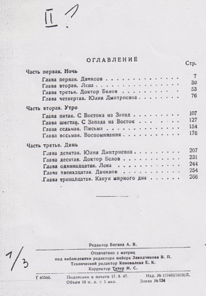 Оглавление романа «Спутники» с пометками вождя | Вера Панова |