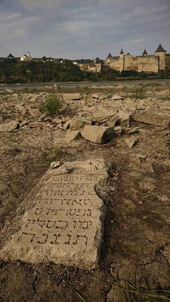 Необычайно засушливое лето и аномальное падение уровня воды во многих реках Европы радует только историков. Во всяком случае новости об очередной древности, появившейся из-под воды, уже не сенсация. Обнажила засуха и еврейские реликвии. В середине августа участники львовской эколого-культурологической экспедиции «Днестр-2015» аккурат напротив знаменитой Хотинской крепости в осушенном русле Днестра нашли обломки еврейских надгробий конца XVIII века. |
