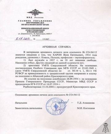 В конце 1947 года их освободили. Жить в Москве, Ленинграде и еще одиннадцати городах не разрешалось. Вейнерт устроился в Калинине на вагоностроительный завод, Харон — в Свердловске, на киностудию. Через год — опять арест и бессрочная ссылка. Харона отправили в местечко Абан, что в Зауралье, Вейнерта — на шахту, в четырехстах километрах от Абана.