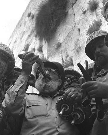 Голда Меир | Раввин Шломо Горен трубит в шофар у Стены плача |