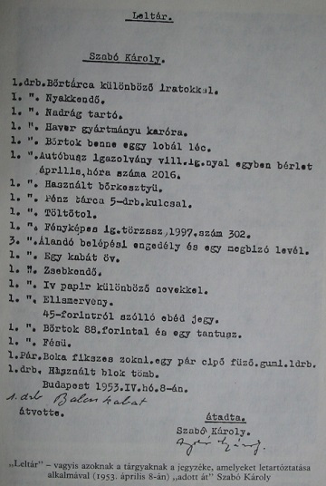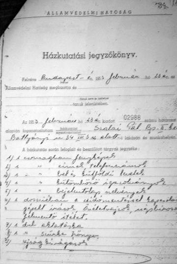 Документ из дела Кароя Сабо, 8 апреля 1953 | Отчет об обыске дома Пала Салаи, 23 февраля 1953 |