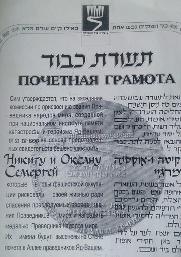 Представники посольства Ізраїлю в Україні відвідали Оксану (Микита помер в 1988 році) у Білоцерківці, вручивши їй відповідну грамоту і медаль. До самої її смерті у 2001 році Держава Ізраїль щомісяця виплачувала Оксані Федотівні приблизно 700$ як Праведниці народів світу.