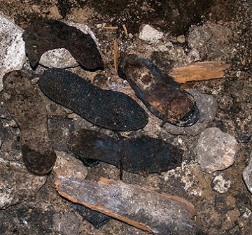 Скромний пам'ятник на братській єврейської могилі. Фото: Ігор Олійник | Підошви від взуття замурованих в одному з підвалів Сатанова |
